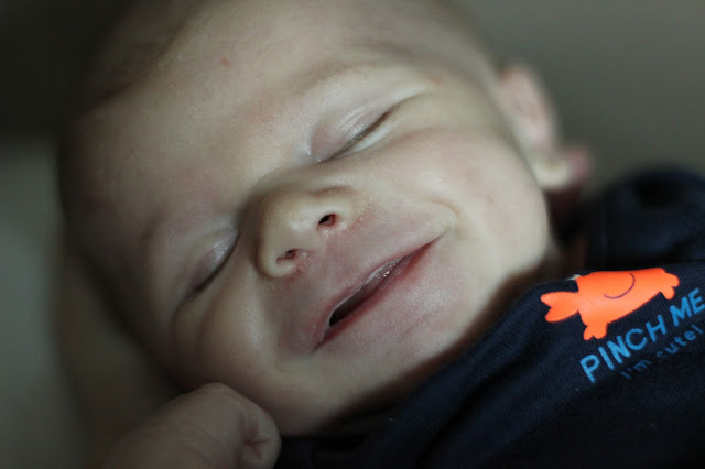 It's crazy that our little man is one month old... He has changed so much! We ordered some super cute monthly birthday stickers, but of course they got delayed in the mail and still haven't arrived! So for now, here's an update on our one month old little boy!